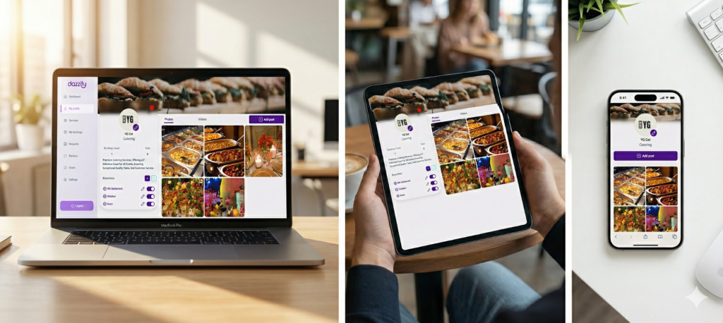 A comprehensive web dashboard for service providers to manage their profiles, bookings, earnings, and client communications. Built for photographers, videographers, makeup artists, and other event professionals to streamline their business operations.